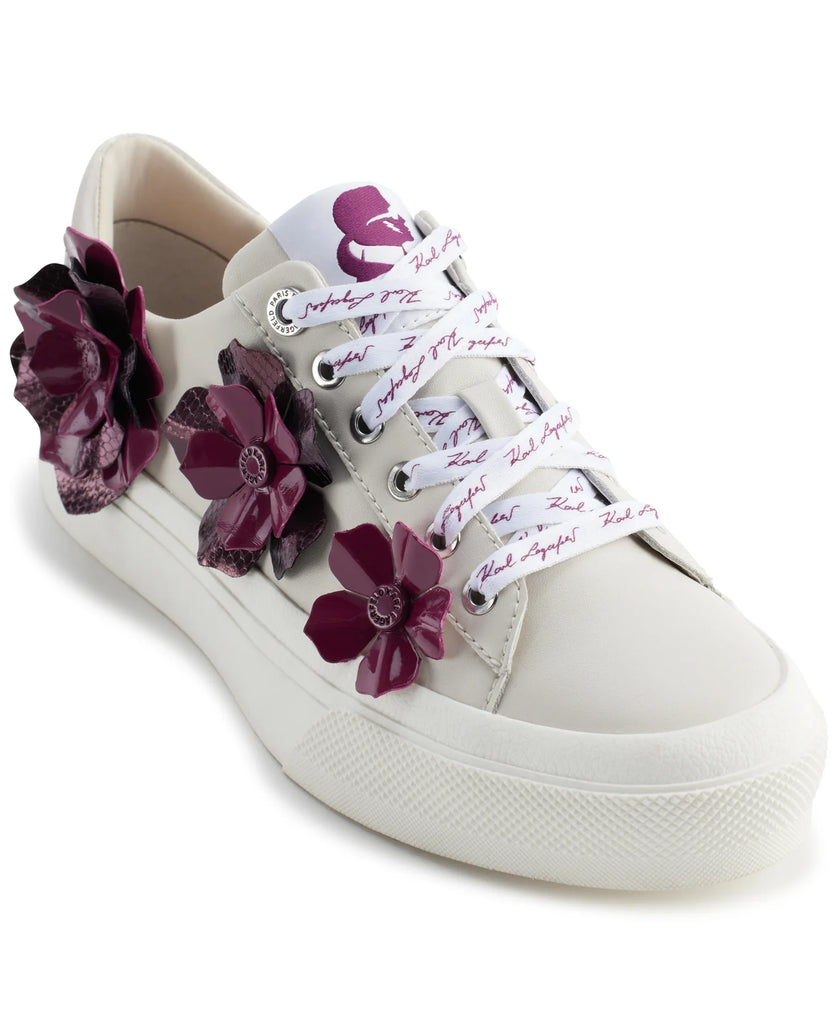 Karl Lagerfeld Womens Georgia Lace Up Sneaker (Soft White/ Red Plum)